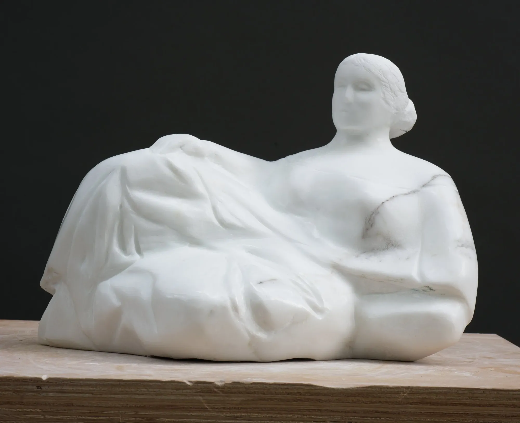 In a recent Instagram post, Kelley described the process by which she creates her sculptures. They begin as a large marble block, and she progresses from grinder with a diamond blade to increasingly fine sanders to achieve the final result. Some of her sculptures are realistic and smoothly polished, bringing to mind Rodin. Others are conceptual and play upon texture and indistinct forms.